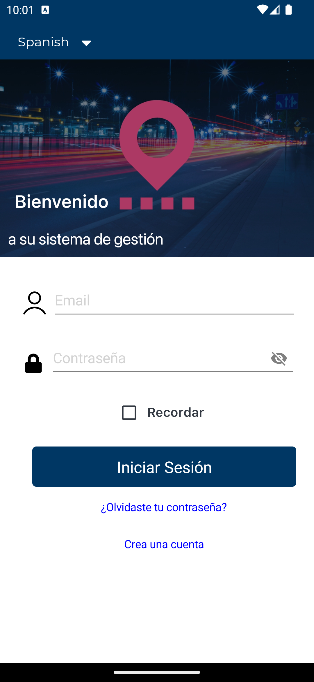 Al abrir la aplicación, te recibirán con la pantalla de inicio de sesión. Aquí encontrarás las siguientes opciones: