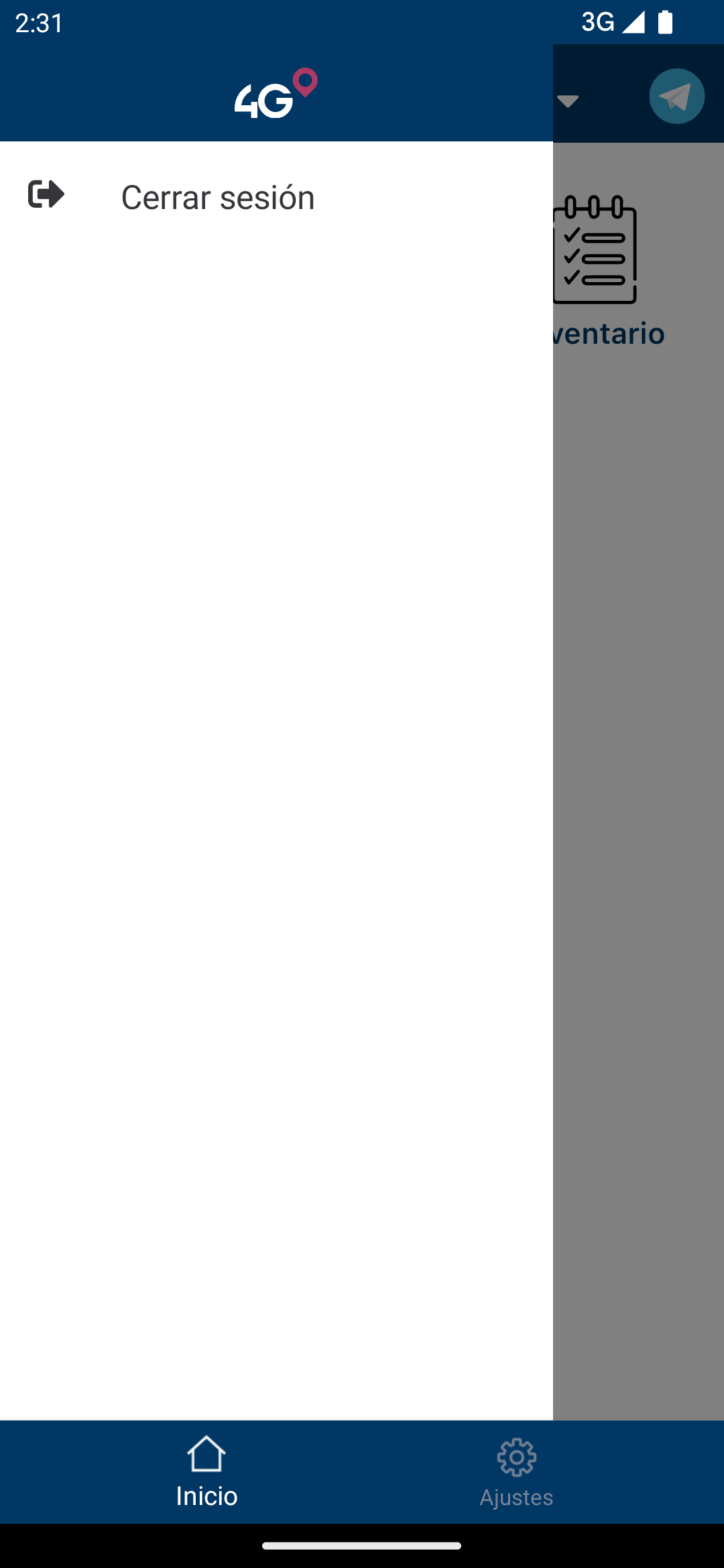 Además, la aplicación proporciona acceso al chat de Telegram y un icono en la esquina superior izquierda que despliega una ventana lateral, desde la cual se puede cerrar la sesión.