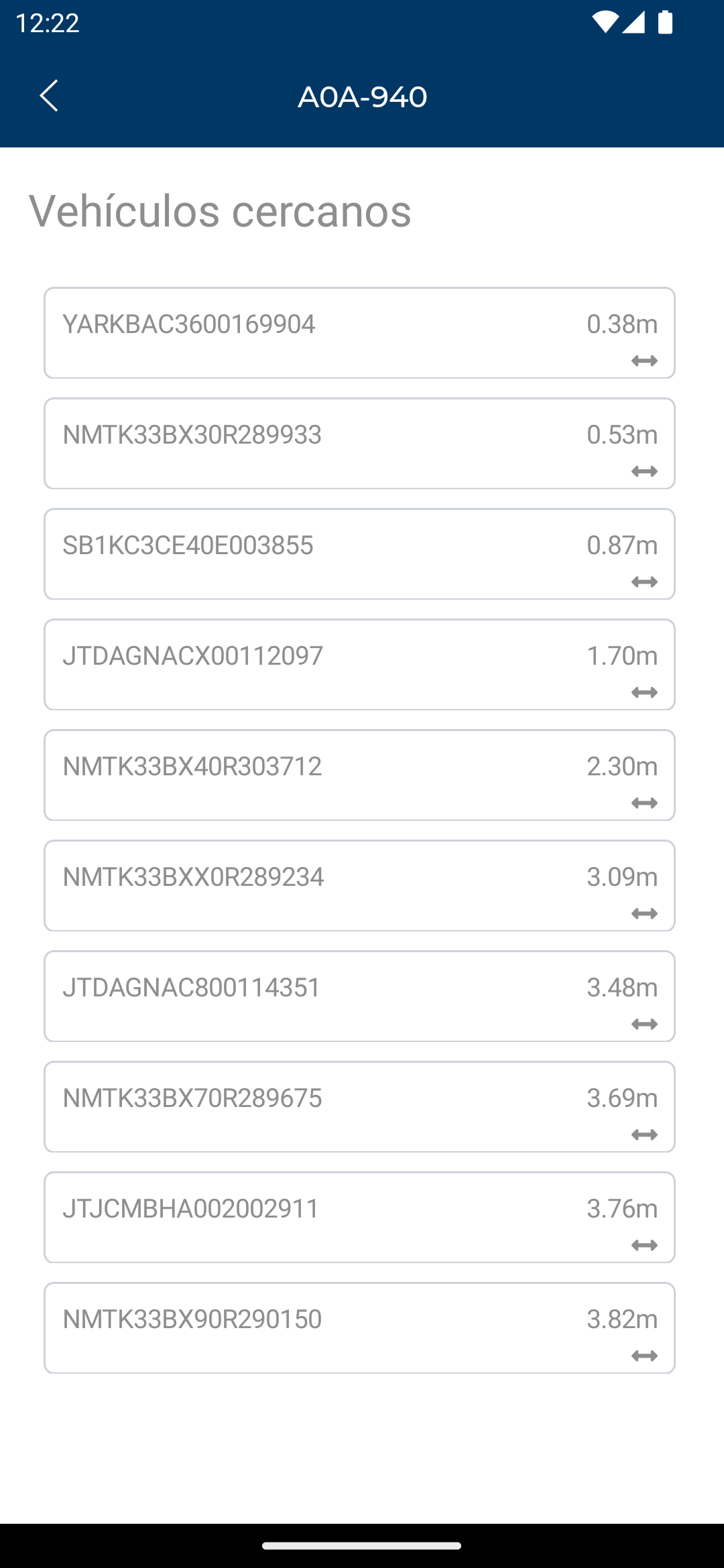 - Muestra la placa del vehículo / bastidor y la distancia desde el vehículo actual.