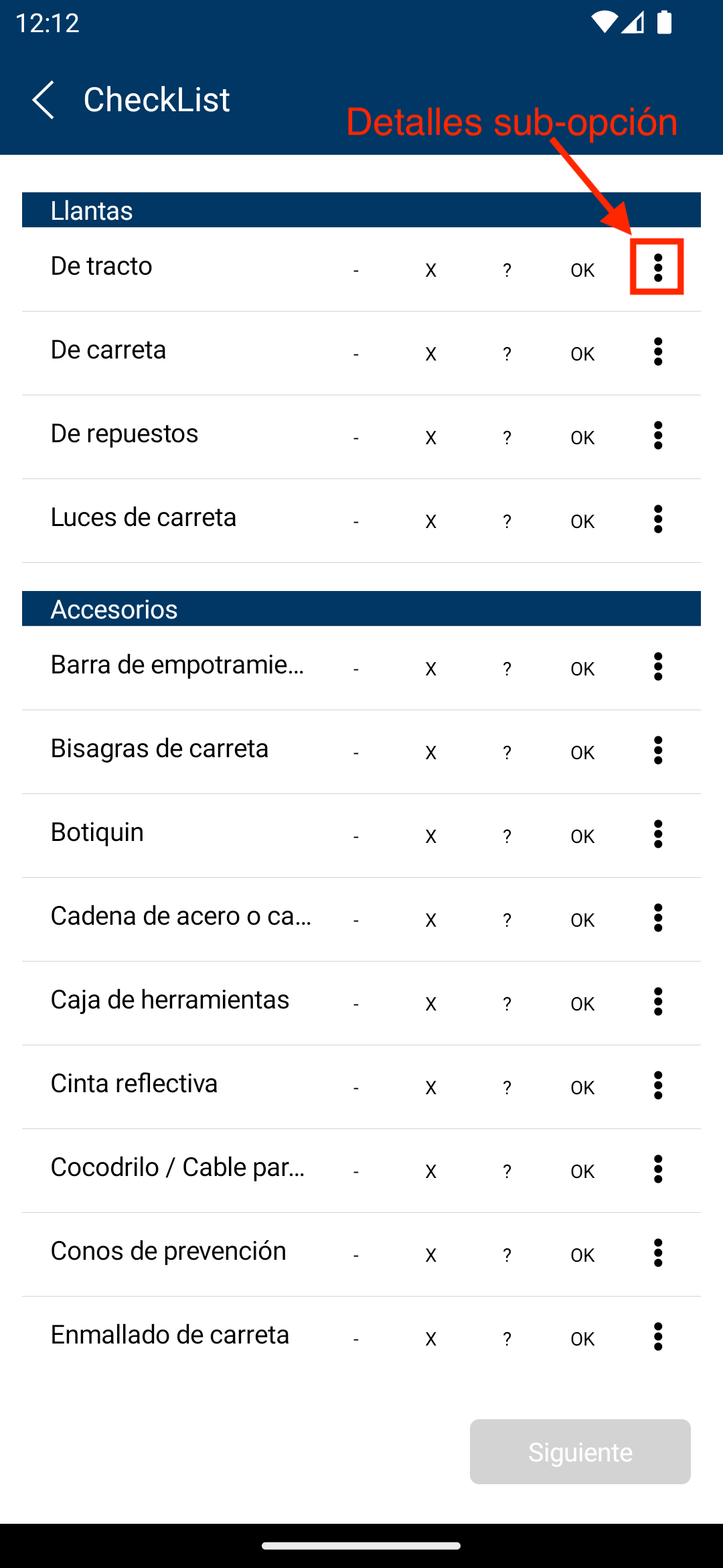 - Añadir observaciones específicas para cada sub-opción del checklist.
