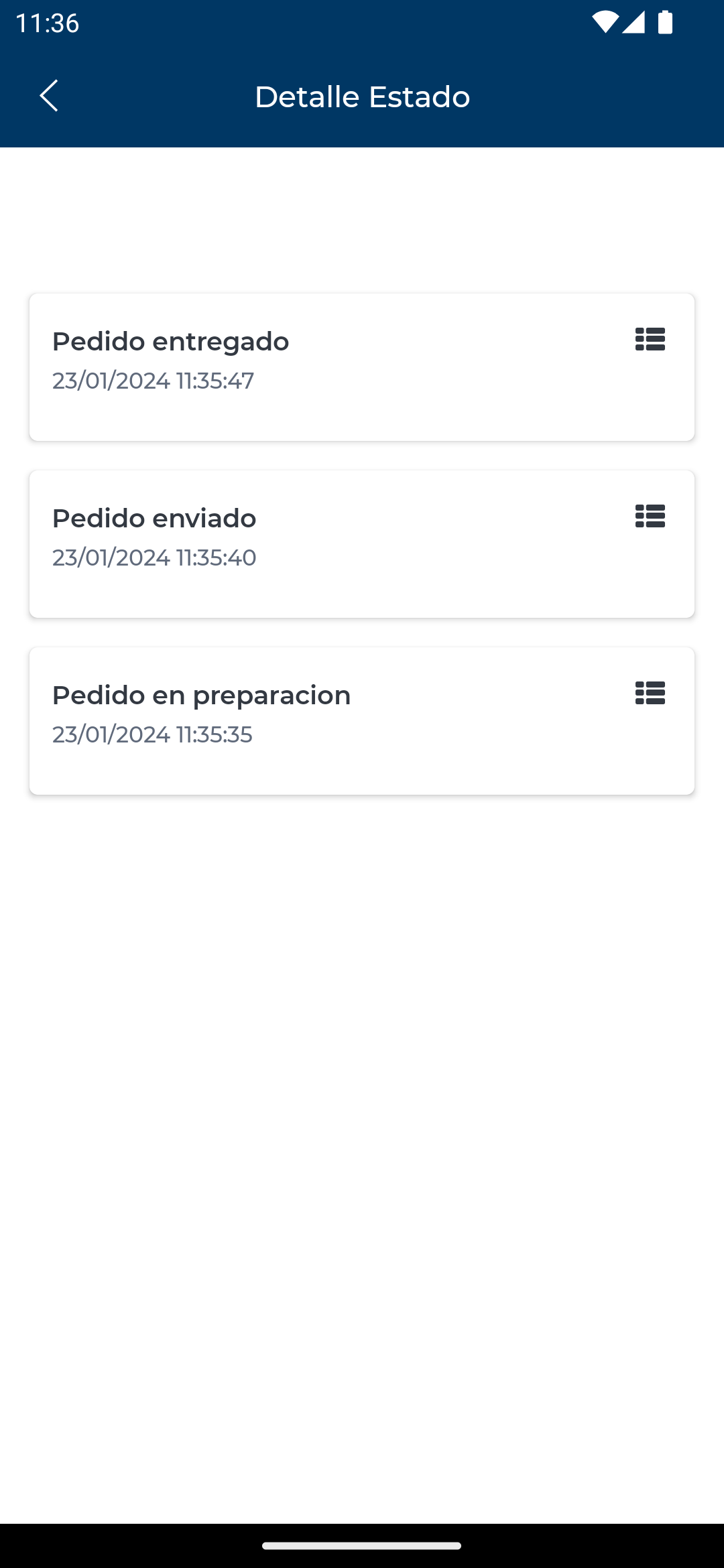 Al tocar una orden en el listado, accederás a los detalles de la orden, incluyendo: