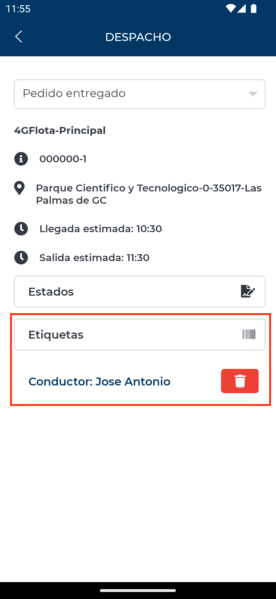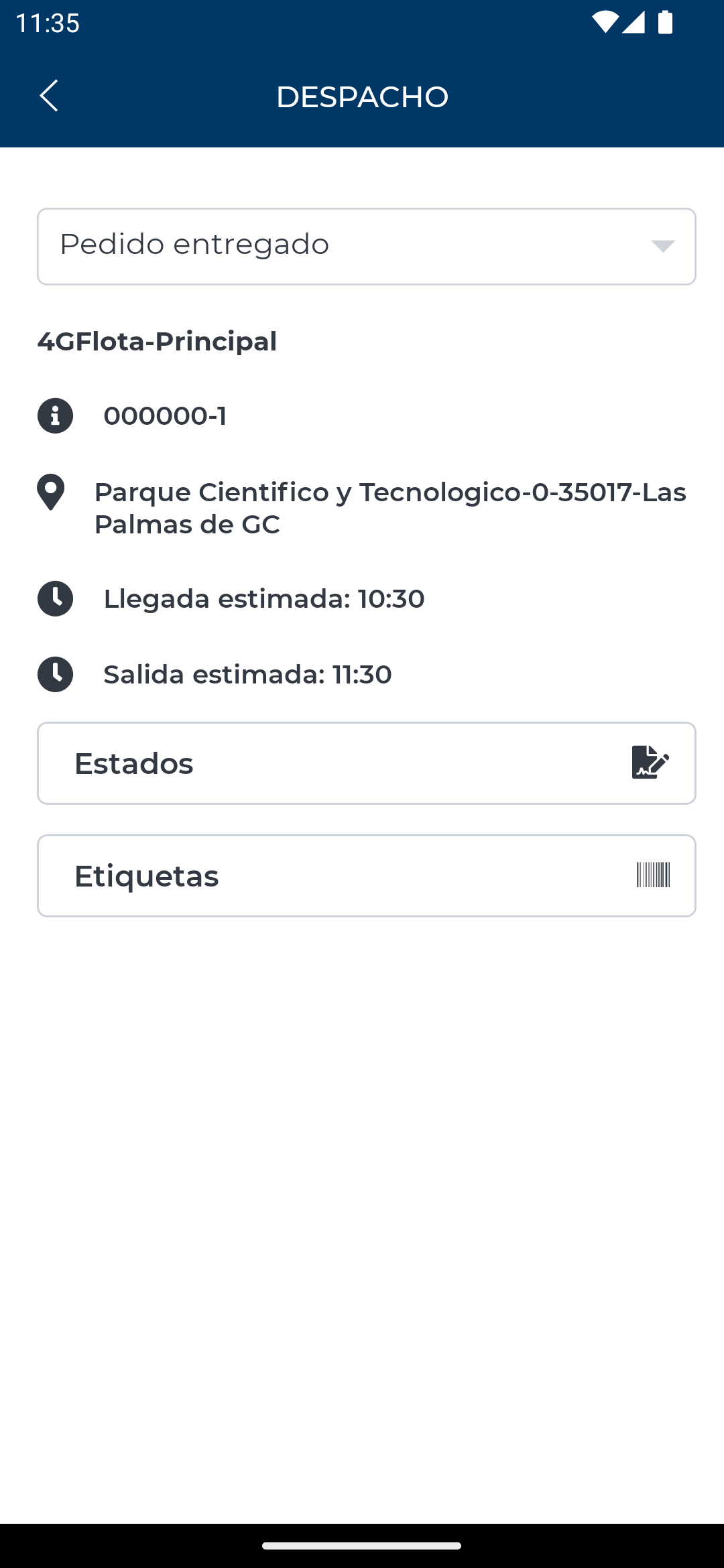 - Llegada: Hora de llegada al destino (si se ha configurado previamente en un estado). Configuración de despachos
