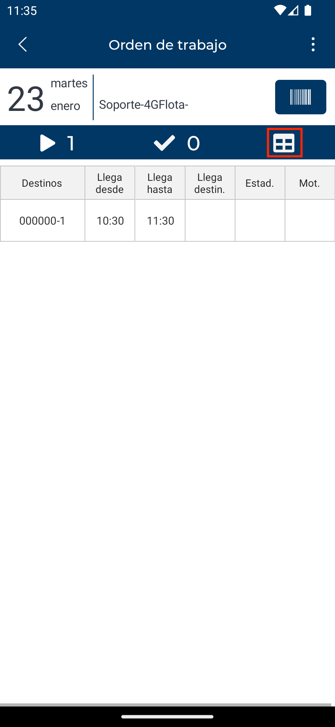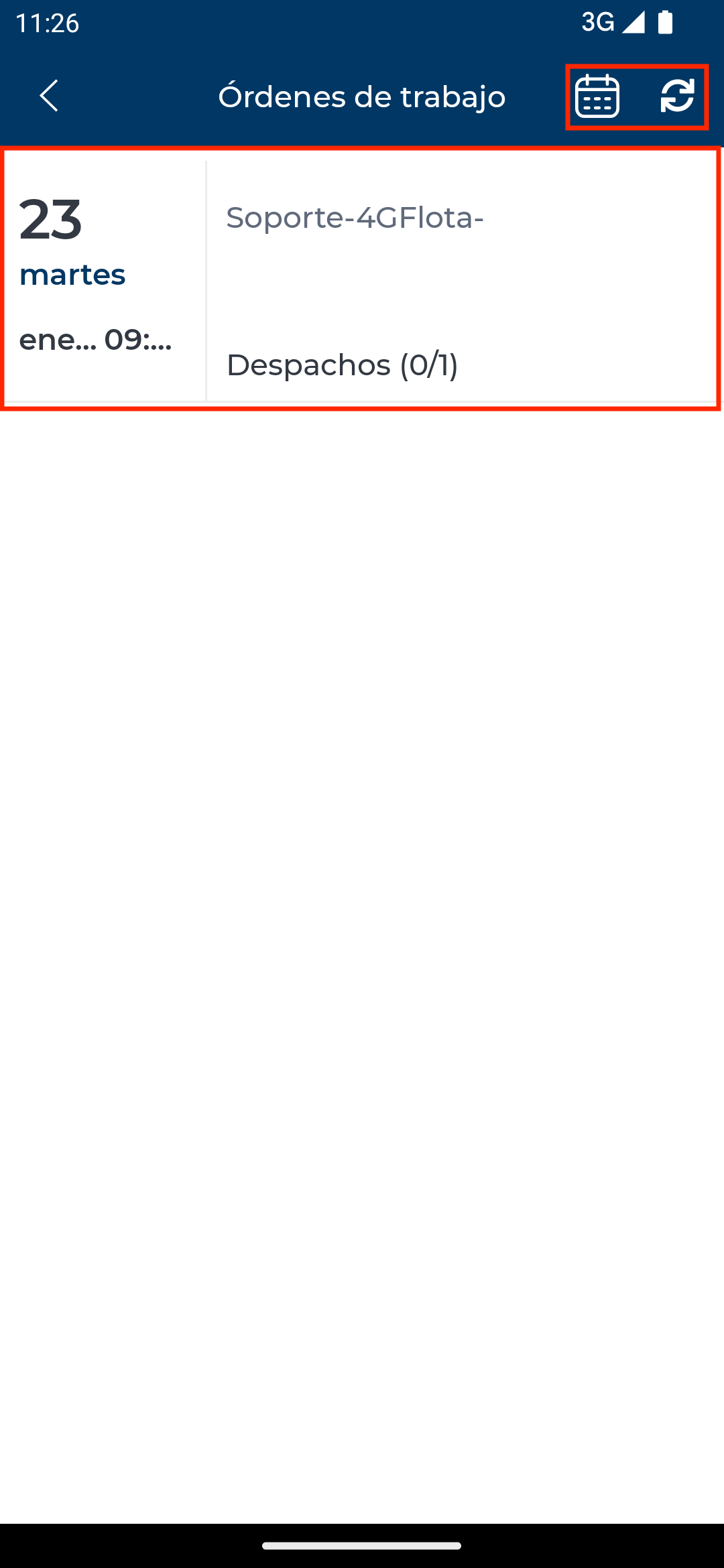 - Actualizar: Sincroniza datos pendientes con el sistema y refresca el listado de ordenes de trabajo. 🔄