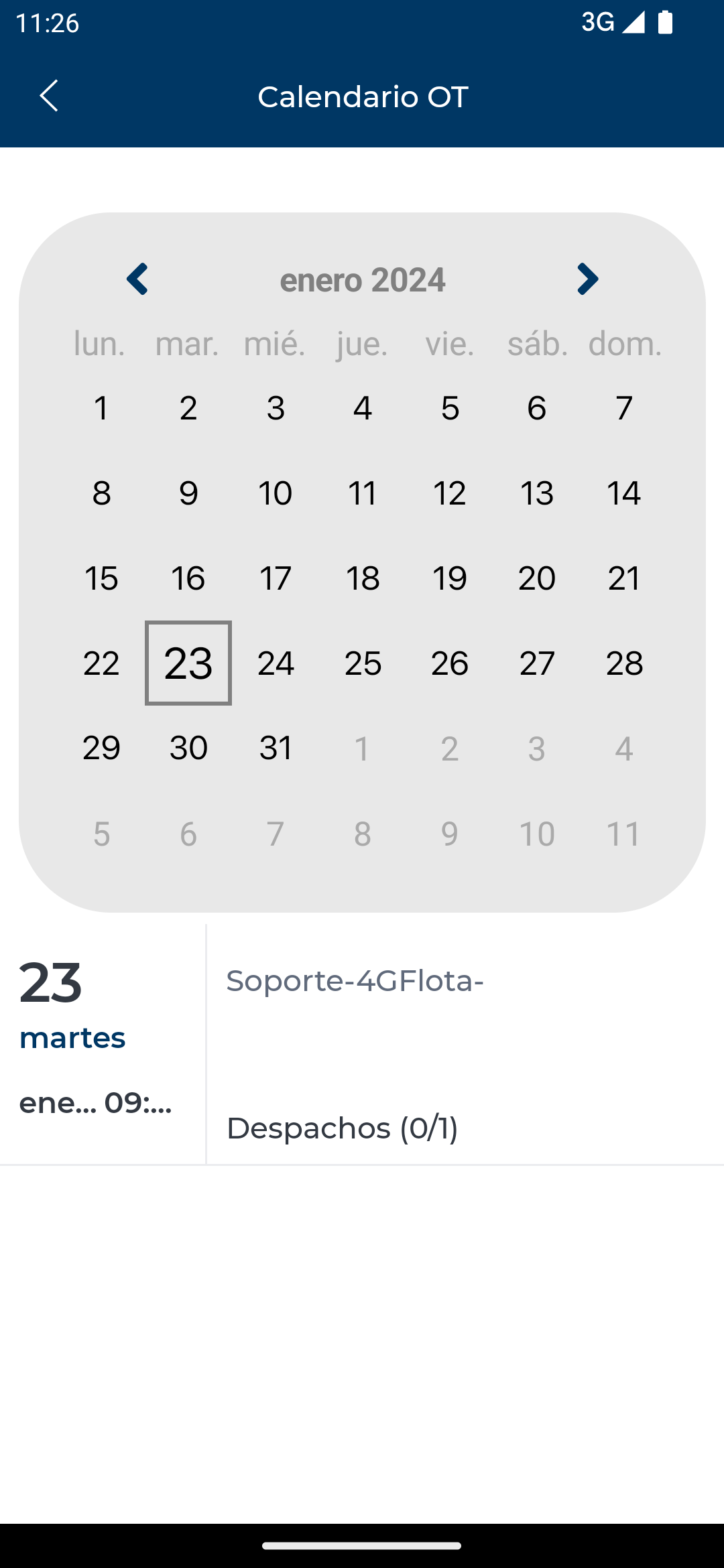 - Calendario: Permite navegar y ver órdenes antiguas o futuras (Solo modo lectura).