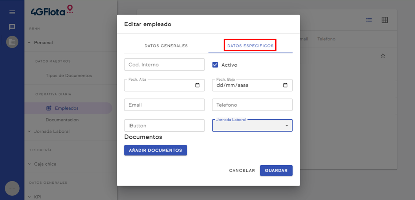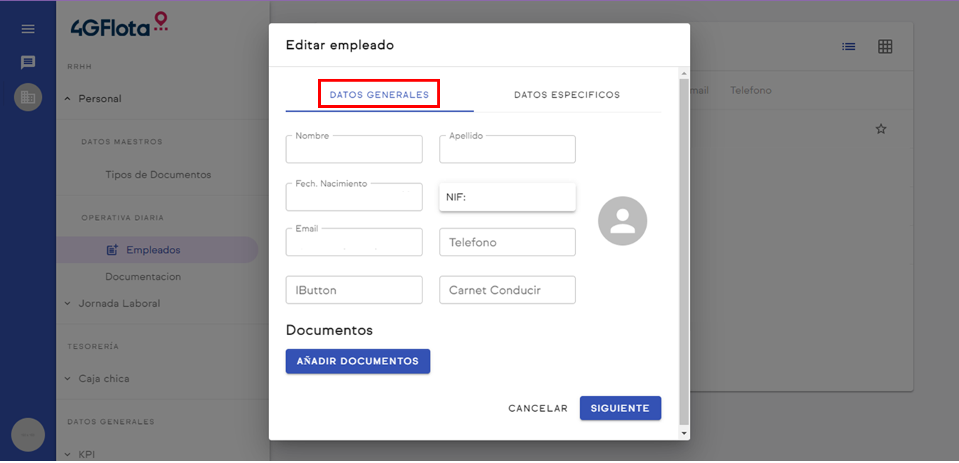 Dentro de los Datos Generales se encuentra los datos básicos del usuario, los cuales se modifica si se requiere, asimismo permite añadir documentos.