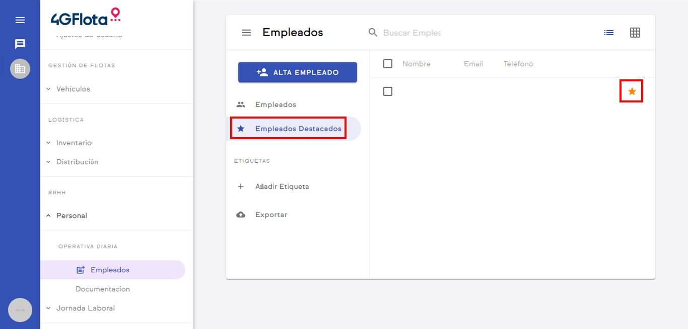 Para destacar el empleado se debe seleccionar “✰” y del mismo modo se elimina.