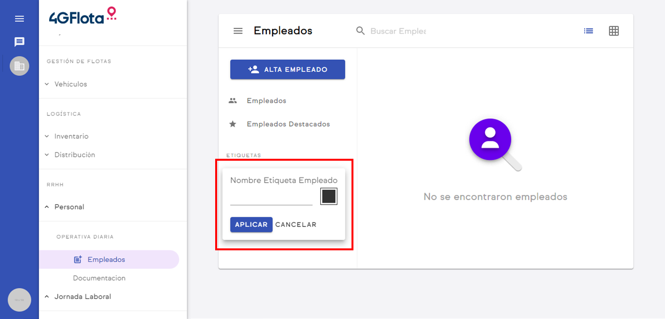 | ⋮ (Etiquetas) | Asigna al empleado la etiqueta seleccionada. |