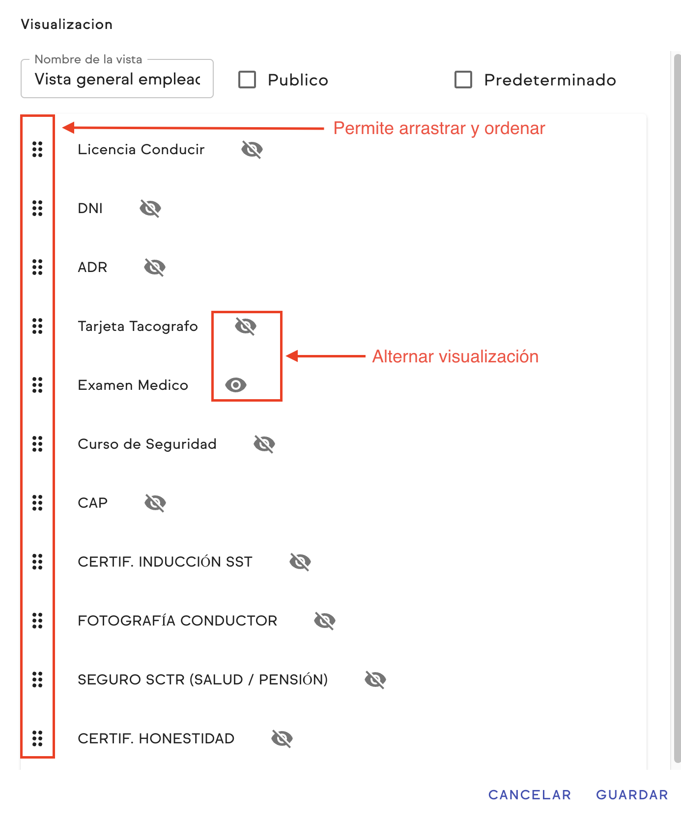 Orden de las columnas arrastrándolas y soltándolas según tu preferencia.
