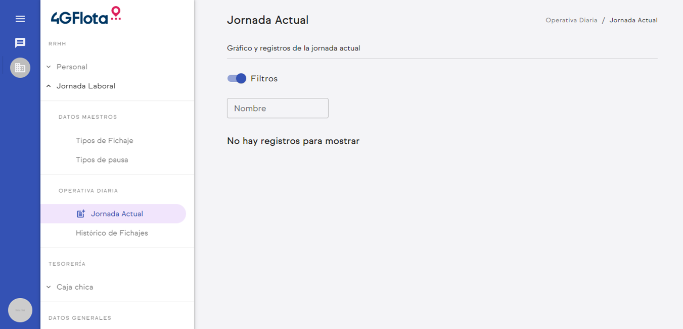 Se visualiza lo siguiente al entrar en el menú Jornada Actual.