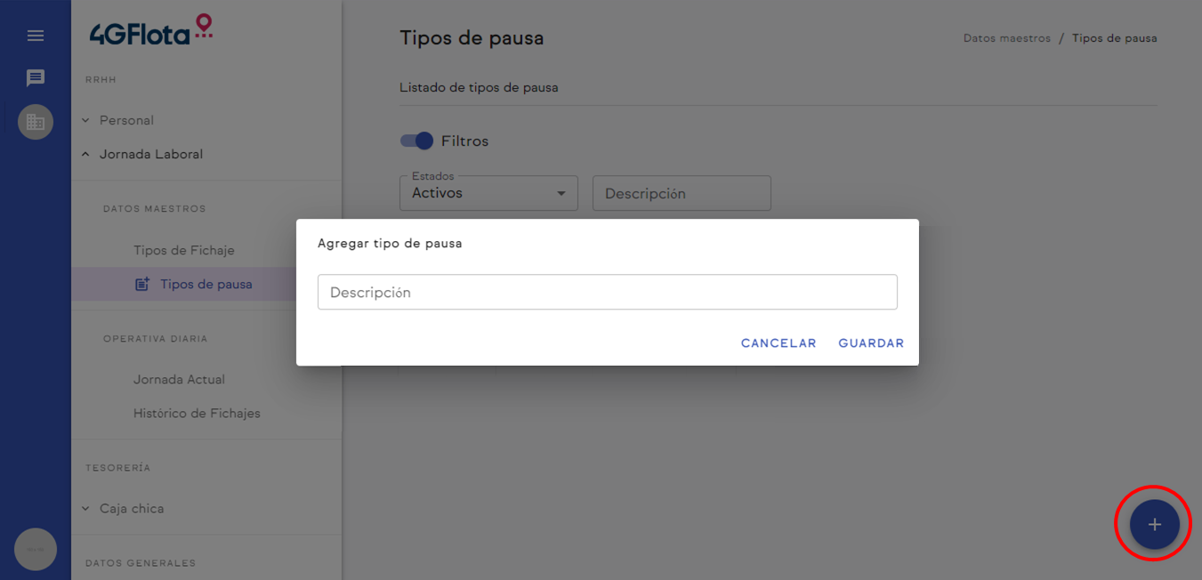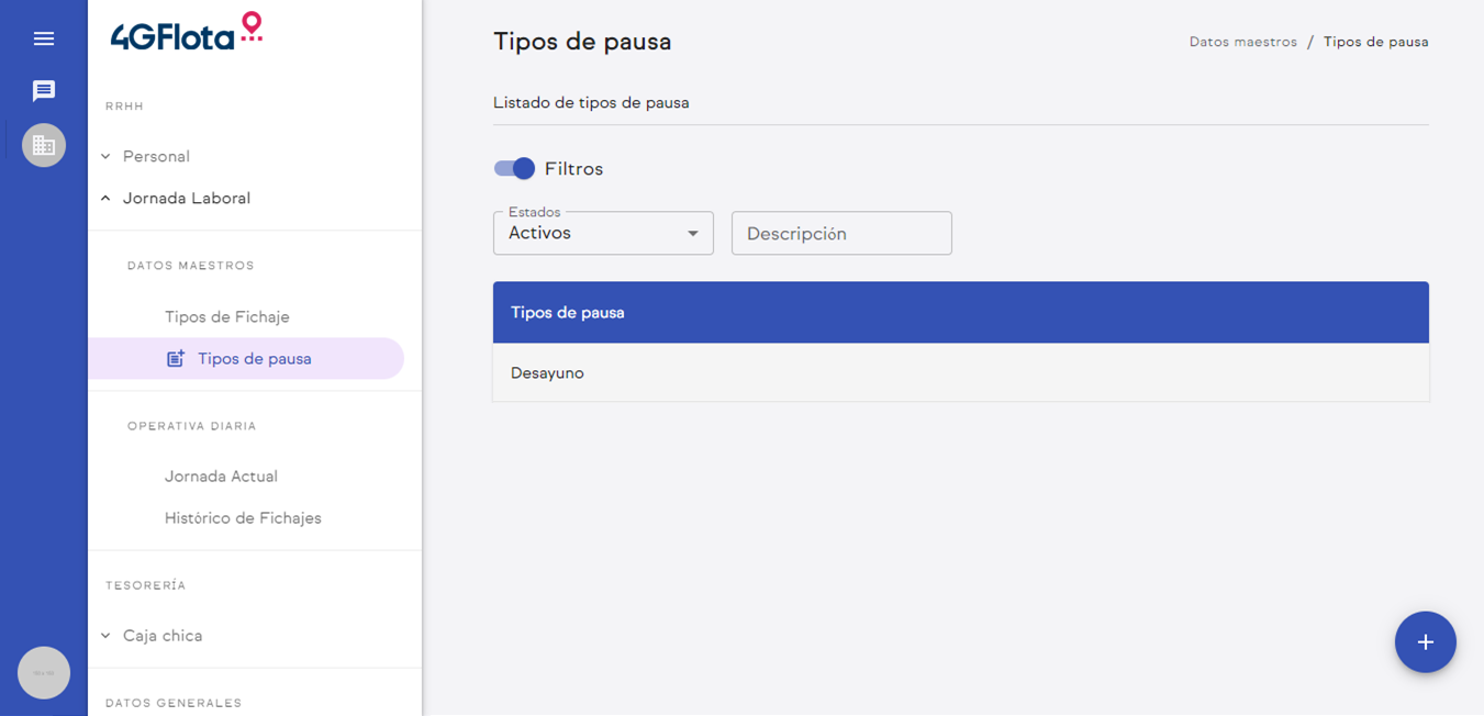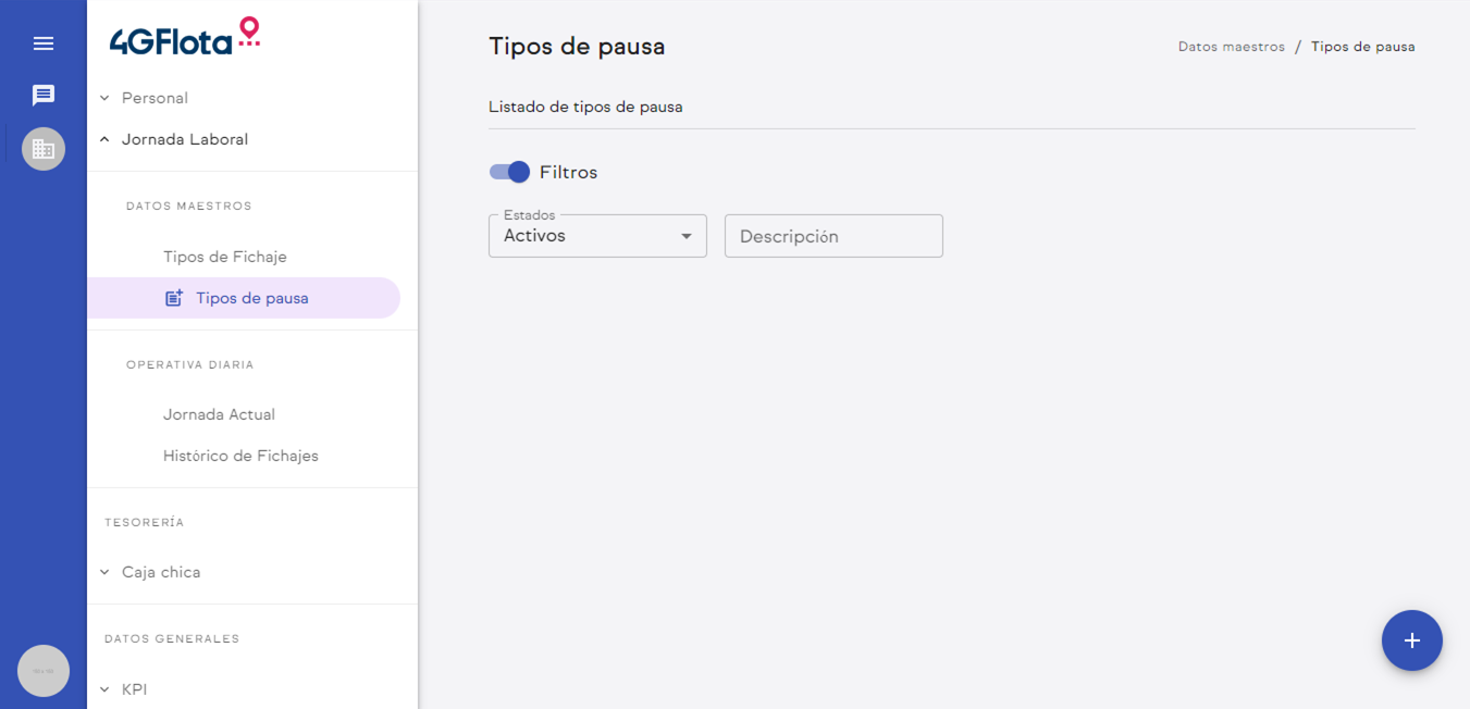 Además, se visualiza el listado de los tipos de pausa conforme se agreguen.