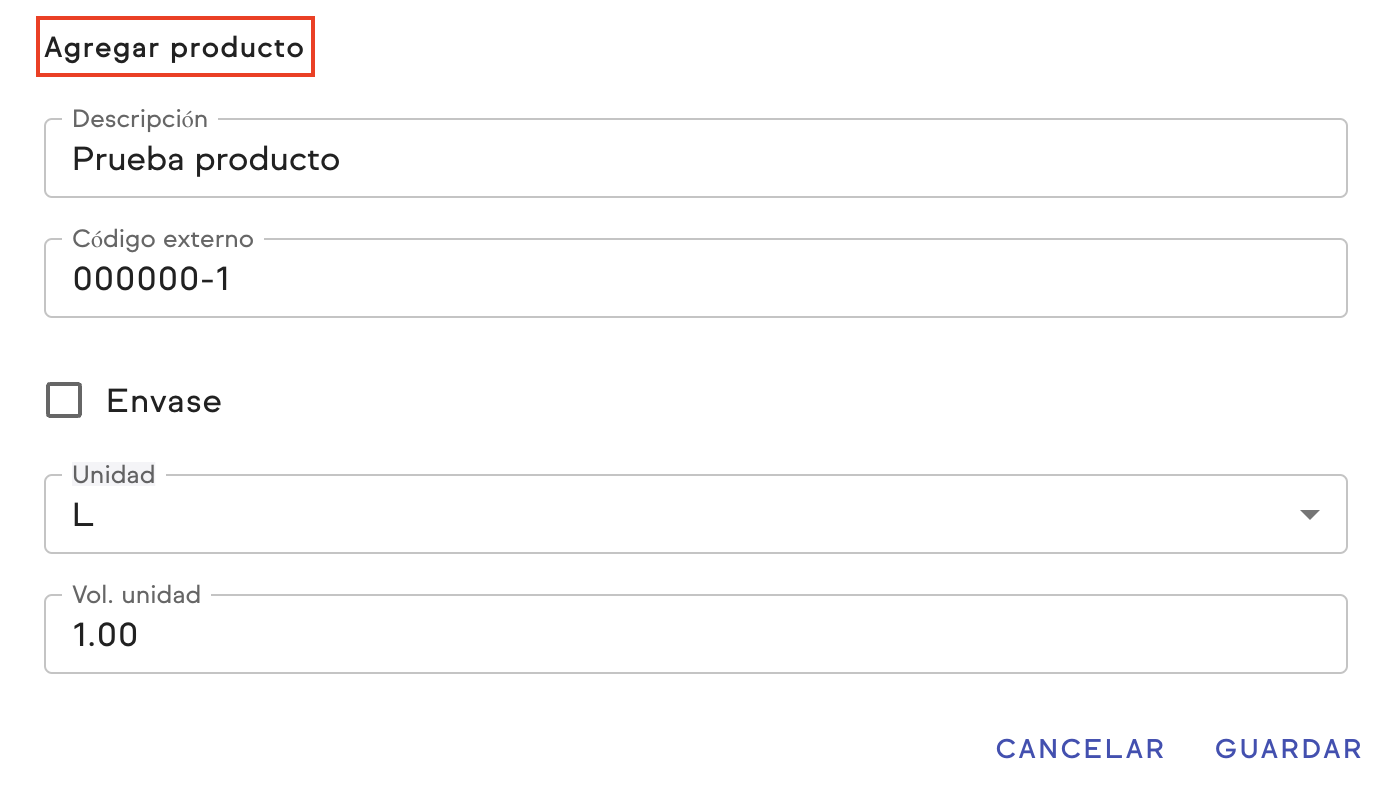 Una vez creado el producto, podrás verlo en una tabla debajo de los filtros. La tabla mostrará los siguientes encabezados: